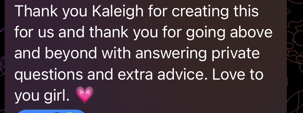 For $14 CDN, you can add on direct, individualized messaging support with Kaleigh